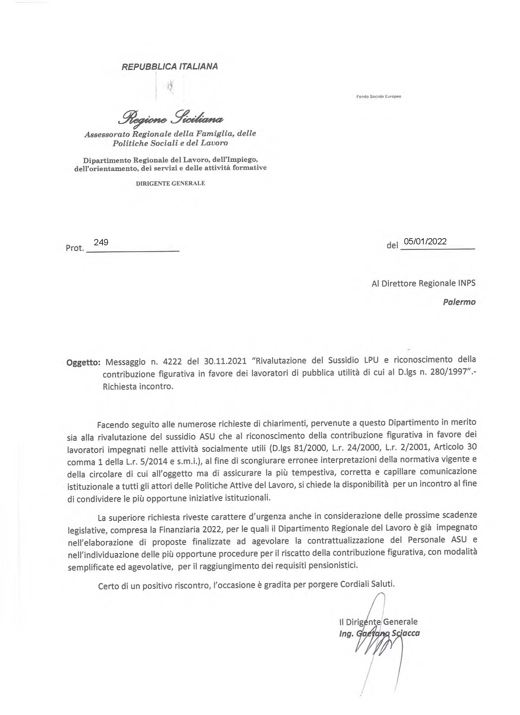 Oggi ci soffermiamo su una delle problematiche ASU, che in questi giorni sta generando non poca confusione, dovuta ad un’informazione poco chiara e attenta, motivata come sempre da una scarsa competenza di chi li divulga, cercando di dare direttive alla platea interessata, senza successo; il riferimento è alla nota INPS 4222 del 30/11/2021 (clicca per leggere) in ordine alla “rivalutazione del sussidio lpu e riconoscimento della contribuzione figurativa in favore dei lavoratori di pubblica utilità di cui al D.lgs 280/97”. Per chiarezza si precisa che la nota INPS in esame, notizia in merito alla definizione di un contenzioso giunto al terzo grado di giudizio, a conclusione del quale, la Suprema Corte si pronunciata sostenendo che tra i lavori socialmente utili così come definiti all’art 1 del Decreto legislativo 1 dicembre 1997, n. 468, rientrano anche i lavori di pubblica utilità , ribaltando così l’orientamento dell’Istituto , che recepiva consolidati indirizzi ministeriali , riconoscendo così la rivalutazione dell’assegno mensile e il riconoscimento della contribuzione figurativa per i lavoratori di pubblica utilità di cui al D.Lgs n. 280/97, principio recepito dall’Ufficio Legislativo del Ministero del Lavoro con nota prot. n. 4235 del 10 Aprile 2019 . Per quanto rappresentato si precisa che il personale ASU in atto utilizzato presso le diverse Amministrazioni sul territorio regionale non è direttamente interessato da detto provvedimento, per tre ragioni : a) non li contempla , b) nessun contenzioso in tal senso è stato avviato perché non sussistevano le condizioni, c) il sussidio ASU grava sul fondo regionale e non più sul fondo nazionale per l’occupazione . Ad ogni vero lo stesso Dipartimento Regionale al Lavoro a firma del suo dirigente Sciacca ha formalizzato con propria nota prot. 249 del 05/01/2022 (clicca per leggere) richiesta d’incontro con la competente sede regionale INPS per valutare altre situazioni in ordine al percorso fin qui fatto ai fini previdenziali e riscatto della contribuzione maturata, problematica che interessa sia il personale ASU tanto quanto il personale già stabilizzato per i periodi pregressi di utilizzazione in Attività Socialmente Utili .