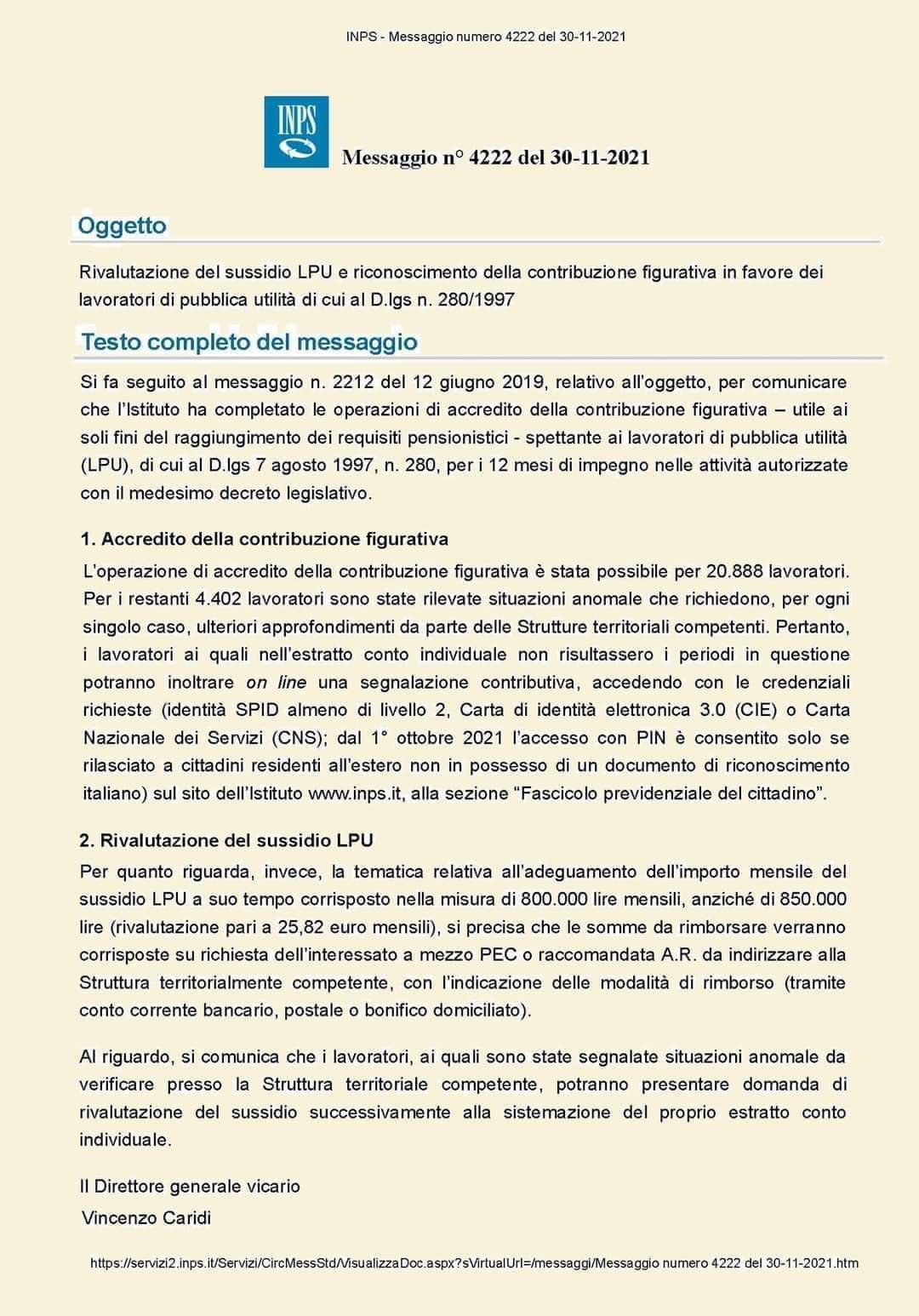 - Messaggio INPS n. 4748 del 31.12.2021 ( Linee di indirizzo)